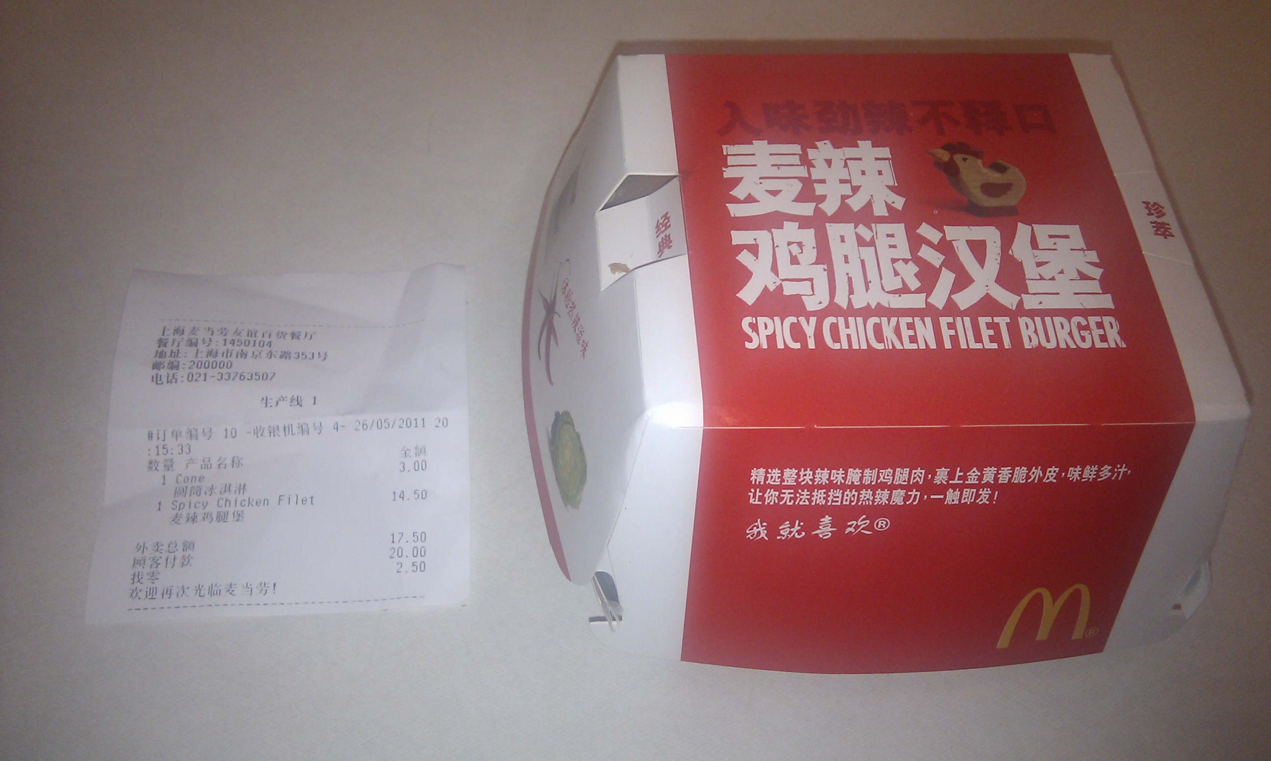 看完外滩,接受了心灵的洗礼,才发现肚子已经咕咕叫了,原来这就是所谓的精神文明少不了了物质文明啊。找了家麦当劳吃了一个汉堡当了晚餐。